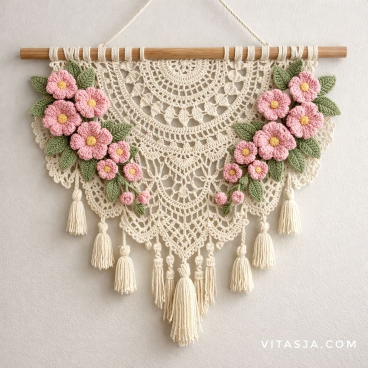 Hiasan dinding rajut handmade untuk mempercantik tampilan ruangan.